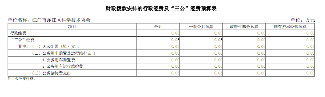 2026年江门市蓬江区科学技术协会“三公”经费预算公开