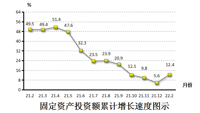 1-2月,全区完成固定资产投资增长12.4%。其中,国有投资增长15.7%;民间投资增长0.4%。分产业看,第二产业增长44.5%,其中制造业增长45.2%;第三产业增长4.7%。