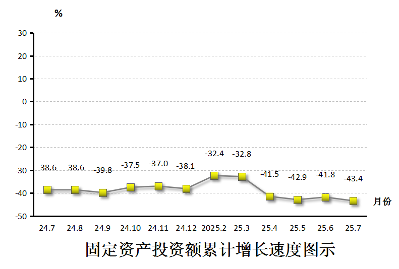 1-7月,全区完成固定资产投资下降43.4%。其中,国有投资下降22.7%,民间投资下降43.9%,港澳台商及外商投资下降57.2%;分产业看,第二产业投资下降39.5%,其中制造业投资下降42.4%;第三产业投资下降46.6%。