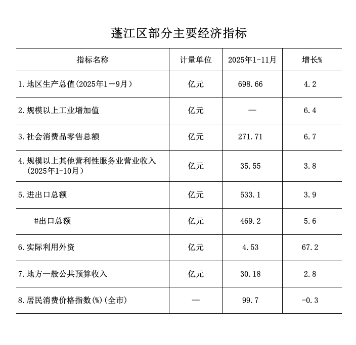 2025年1-11月蓬江区经济运行简况