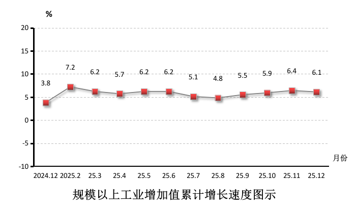 2025年,全区规模以上工业增加值比上年增长6.1%。分行业看,制造业增加值增长8.7%;电力、热力、燃气及水生产和供应业下降3.2%。分经济类型看,股份制企业增加值下降1%;外商及港澳台商投资企业增长23.4%。分企业规模看,大型企业工业增加值增长10.7%,中型企业增加值增长0.4%,小型企业增长1.8%。全区工业用电量增长3.8%。