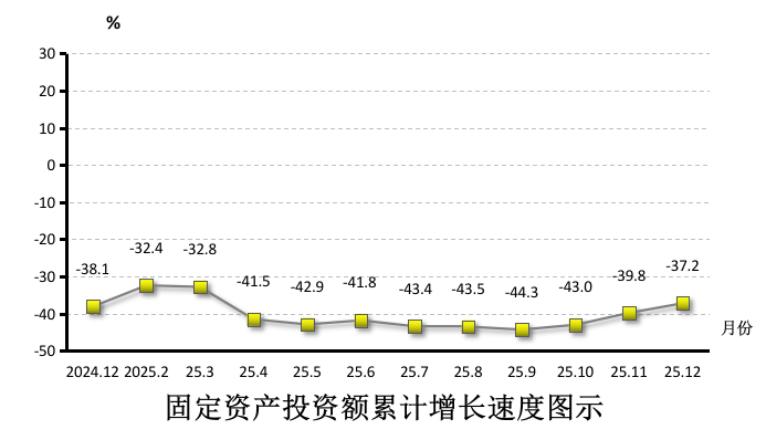 2025年,全区固定资产投资比上年下降37.2%。其中,国有投资下降6.3%,民间投资下降29.9%,港澳台商及外商投资下降60.9%;分产业看,第二产业投资下降36.9%,其中制造业投资下降40.3%;第三产业投资下降37.5%。