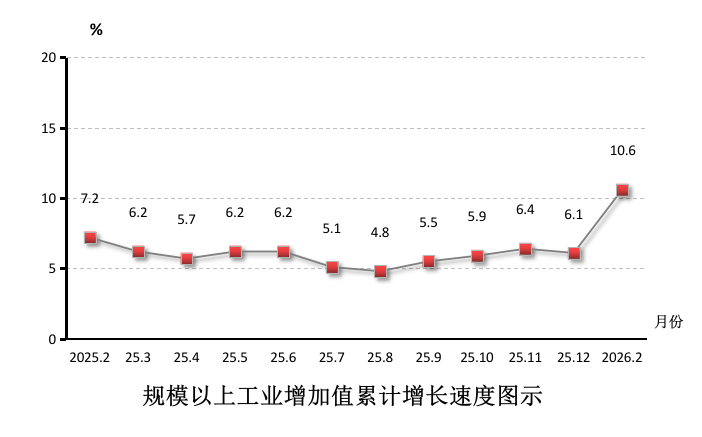 1-2月,全区规模以上工业增加值同比增长10.6%。分行业看,制造业增加值增长10.9%;电力、热力、燃气及水生产和供应业增长9.2%。分经济类型看,股份制企业增加值增长4.5%;外商及港澳台商投资企业增长23.3%。分企业规模看,大型企业工业增加值增长17.2%,中型企业增加值下降9.8%,小型企业增长9.4%。全区工业用电量增长17%。