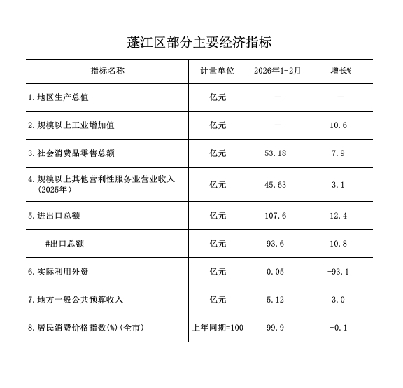 2026年1-2月蓬江区经济运行简况