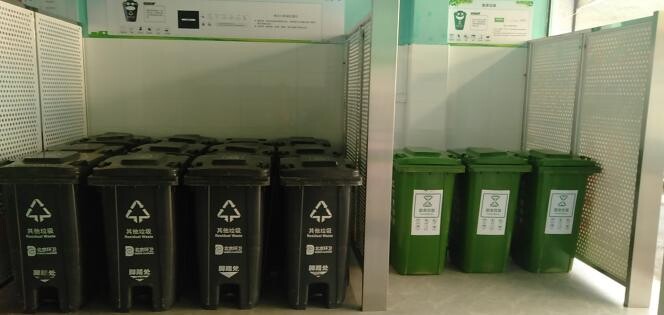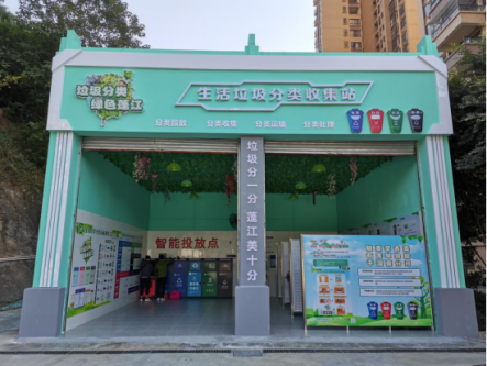 此前,蓬江区结合生活垃圾分类工作,通过艺术化的设计,已升级改造帕佳图、农林、滨港御城、美景、北苑5座生活垃圾分类收集站,兼顾垃圾收集和阵地宣传实效,切实增强对居民宣传的耳濡目染和潜移默化。东风生活垃圾分类收集站除了参照以往的设计模式,还针对居民区产生较多其他垃圾和厨余垃圾、较少可回收物和有害垃圾的情况,对四分类垃圾的投放进行了优化:收集站左侧门的卷闸长期只落一半,下半部分放置其他垃圾和厨余垃圾垃圾桶,居民可24小时到此处投放其他垃圾和厨余垃圾;收集站右侧门于每日下午3时-5时开放,居民可在这段时间进入站内将可回收物或有害垃圾投放在相应区域,实现了其他垃圾和厨余垃圾24小时收集、可回收物和有害垃圾定时收集的功能。