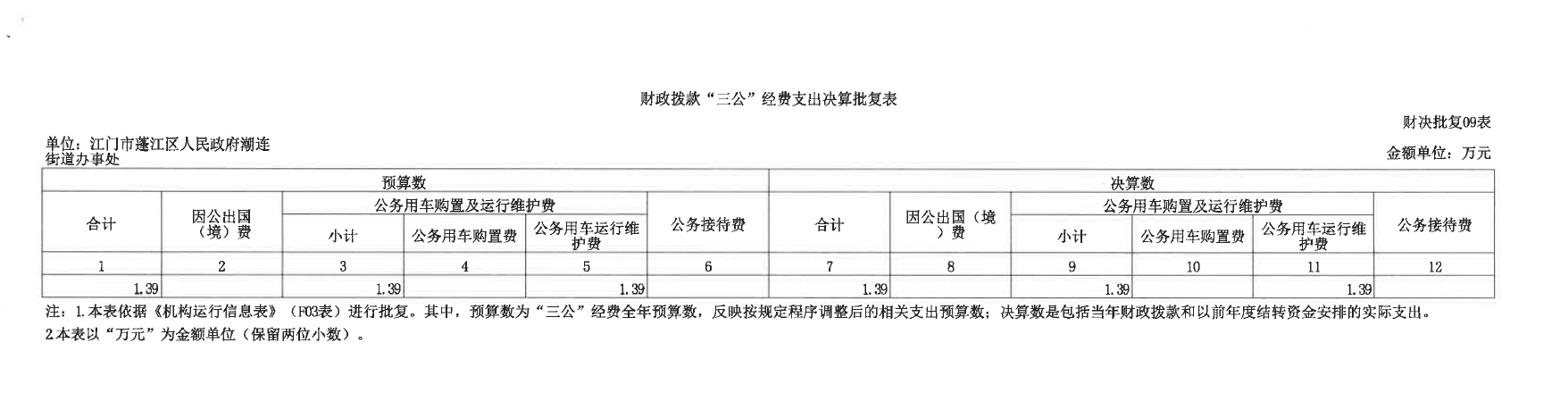 潮连街道办事处2024年财政拨款“三公”经费支出决算批复表