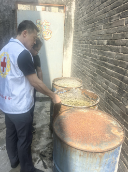 蓬江区红十字志愿服务队下沉一线,包村联户,与农村、社区“两委”干部联合作战,全力以赴打赢疫情歼灭战。通过串小巷、进家庭,向居民派发防控宣传单,协助居民检查住所周边的花盆托盘、水桶、水缸等容器,进行翻盆倒罐,面对面讲解基孔肯雅热的传播途径、症状及预防方法,提醒居民做好日常防蚊措施,保持环境整洁,做好个人防护。
