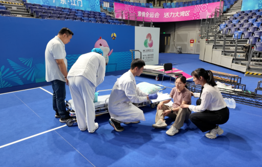 为确保场馆内所有注册人员和持票观众能得到最快速、最优质的医疗服务,赛事指定定点救治医院三所,分别为江门市中心医院、江门市五邑中医院、江门市人民医院;驻点医院四所,分别为江门市中心医院、江门市五邑中医院、江门市人民医院和江门市第二人民医院,并开通急救绿色通道,提供快速安全转运和治疗。从预检分诊、挂号、就诊、检查到取药、住院,全程设有醒目标识和专人引导。截至目前,各医院驻点人员已基本确定,为赛事医疗保障提供了人员基础。