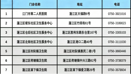 蓬江区2025年适龄人群HPV疫苗及带状疱疹疫苗接种惠民专场接种单位一览表