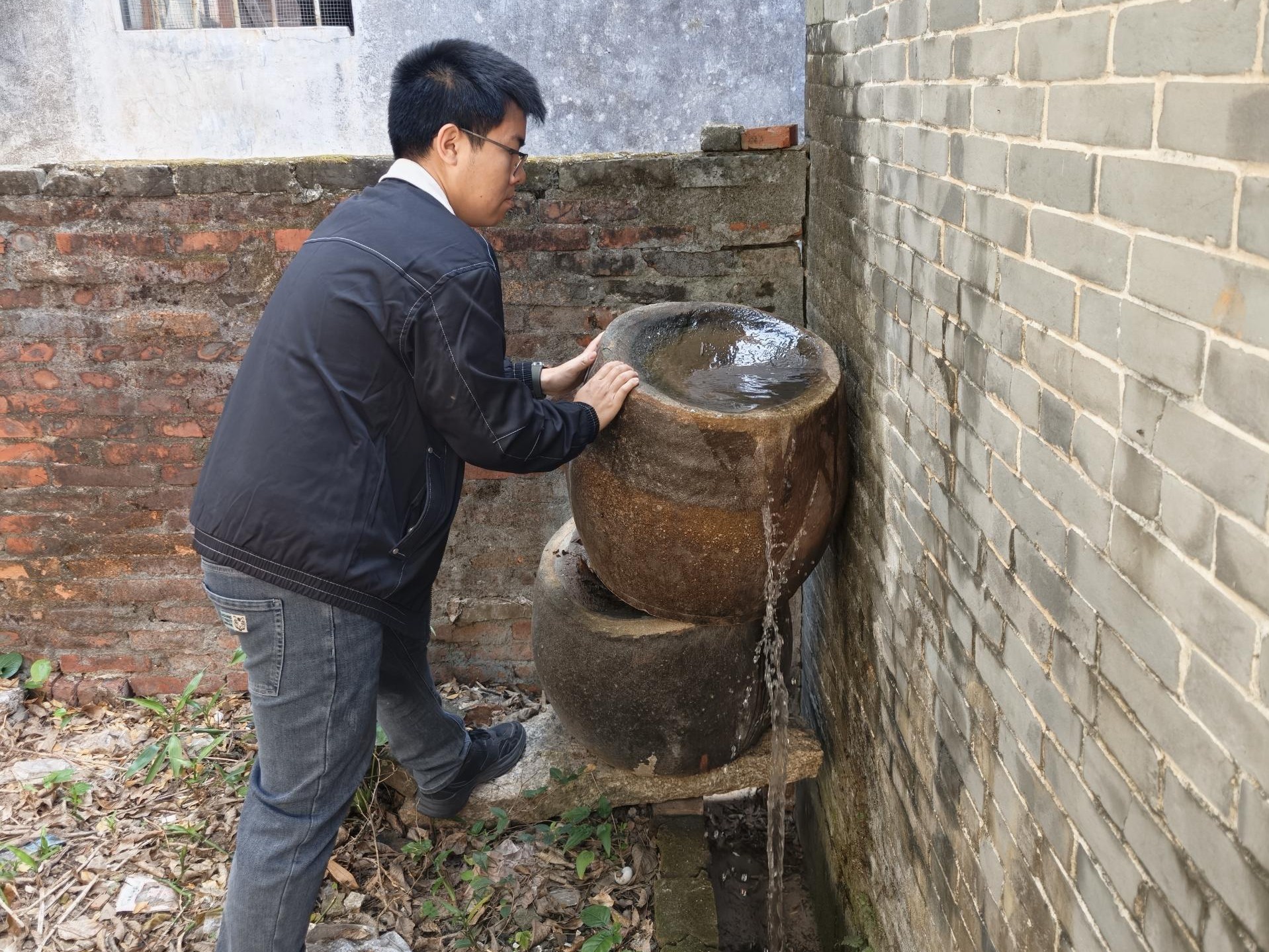 工作人员清理燃气场所内的积水和堆积落叶