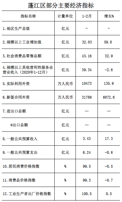 2021年1-2月蓬江区经济运行简况