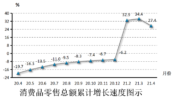 1-4月,全区社会消费品零售总额82.82亿元,增长27.4%。分行业看,限上批发和零售业零售额增长35.8%;限上住宿和餐饮业零售额增长71%。