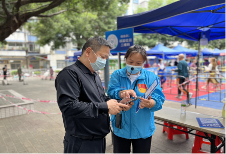 30号晚上8点,刘晓梅收到通知后紧急召集所有社区工作人员召开临时会议,对采样点实施方案进行讨论和具体工作进行安排,还联系网格员、志愿楼长、党员志愿者进行拉网式宣传,确保居民通知到位。直到晚上11点,场地选址、规划布置、物资准备、人员调度等准备工作一一落实,此时刘晓梅的手机已打到发烫,一直插着的充电宝电量也所剩无几。