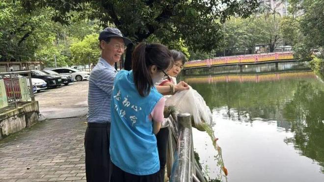 方案落地,抢的就是时间。夏日正午的太阳把地面晒得发烫,黄碧莹和甘化新村业委会党支部的党员们抬着一袋袋装满灭蚊鱼的水袋,深一脚浅一脚走到湖边进行投放,汗水浸湿了党员志愿服。“快看,小鱼游进湖里了!”看着居民们兴奋的眼神,她笑着擦汗:“只要能护好大家的健康,这点累不算啥。”
