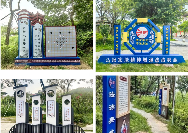 今年7月,潮连街道芝山社区党支部和广东卫斯理律师事务所党支部结成共建对子,这是蓬江区律师行业两级党组织着眼更好、更优护航保障“百千万工程”顺利实施,创新探索通过“律所党支部+驻村(社区)党支部”共建形式,形成资源共享、优势互补的互学互助联动平台,在共建法治乡村,共助乡村振兴中,实现律所与结对村(社区)建设取得互相促进、共同提高的共赢效果。建设芝山社区法治主题公园,就是两个支部紧盯乡村振兴所需,发挥各自优势,联建共建美丽乡村的迈出的第一步。原本作为社区居民休闲健身场所的小小公园,经过重新修葺,有机融入了法治宣传小驿站、法治故事小绿径、法治学习小课堂、法治活动小广场等多种法治设施、元素,实现了从“外貌”到内在“气质”的翻新,散发出富有时代气息的法治文化魅力!必将在为社区群众提供休闲娱乐功能的同时,潜移默化将法治理念传播给芝山居民,为芝山社区美丽乡村建设提供高质量的法治保障。