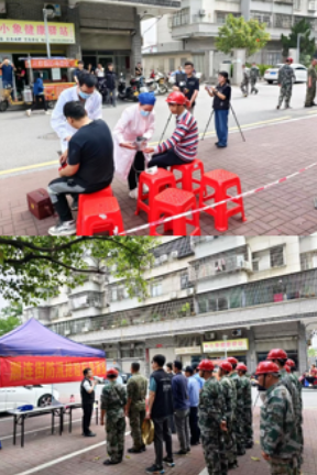 此次演练模拟我街遭受连续强降雨期间,4月10日上午9点,潮连街米机楼后山发生山体倾斜坍塌,威胁附近群众生命财产安全,其中2人被困于出租房屋内,等待救援。潮连街三防办接收到报告后,立即下达应急疏散通知,马上成立现场指挥部,启动地质灾害避险应急预案,通知各相关单位部门、社区做好准备,成员单位一切听从指挥部会商意见,各小组迅速集合,按分工开展救援行动。治安保卫组第一时间进行现场秩序维护与警戒,同时,利用喇叭、敲铜锣等方式向附近受威胁群众发布请勿靠近指令。应急抢险组对被困的2名群众按照预定路线安全转移至临时安置点。医疗救护组在现场设立临时医疗点,对受伤的群众进行救治,后续对坍塌点进行紧急处置,防止次生灾害发生。在各小组的密切配合和共同努力下,受灾群众全部转移并得到妥善安置,演练取得圆满成功。
