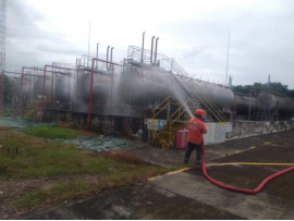 为积极响应6月份安全生产月宣传活动,进一步提升燃气安全事故应急处置能力,增强各部门间的协同配合,近期,荷塘镇应急办与荷塘镇专职消防队联合喜威(江门)液化石油气有限公司(荷塘气站)举办了一场特殊的消防应急演练。此次演练聚焦实战,模拟出现5#储罐液相出口管根部阀法兰泄漏的突发状况,全面检验各方应急救援水平。