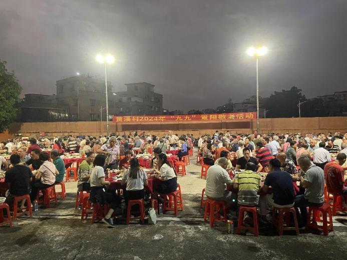 10月11日晚,杜阮镇贯溪村委会在贯溪村幼儿园篮球场举办“九.九”重阳敬老宴,邀请贯溪村60周岁及以上长者参加。本次共设宴52围,有500多人参加。此项活动在贯溪村已举办40多年,深受村民的欢迎。现场座无虚席,不仅营造了浓厚的重阳节日氛围,让长者在一片欢声笑语和祝福声中,度过了一个温馨、快乐的节日,也让他们感受到了关怀和温暖。