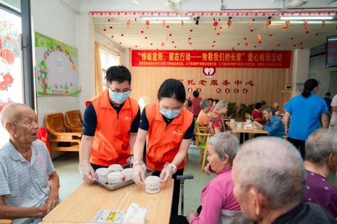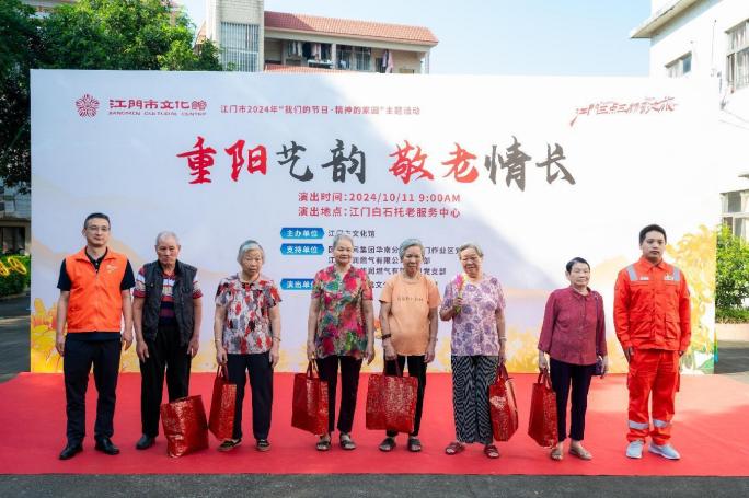 10月11日,江门市文化馆联合国家管网集团华南分公司江门作业区党支部、江门华润燃气有限公司党支部、江门新会华润燃气有限公司党支部等企业,在江门市蓬江区白石托老服务中心举办了“我们的节日——重阳艺韵•敬老情长”演出活动,活动对托老服务中心所有长者送上慰问品、“华润爱心炖汤”和节日祝福,把关怀与温暖送到长者的心坎上。
