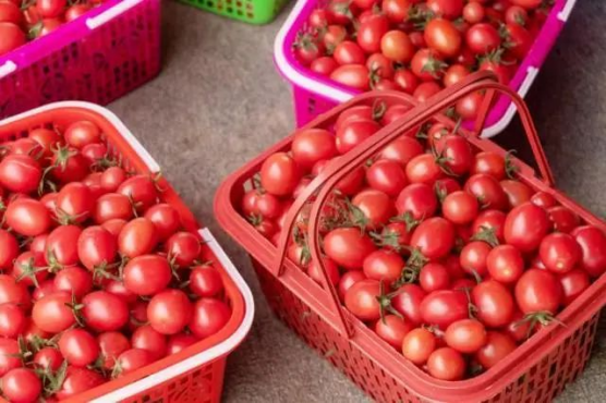 圣女果:色泽剔透晶亮,呈红色或橙色。果实为原形和椭圆形,果实内形像似蜂巢,颗粒饱满,味道甘甜、鲜美。