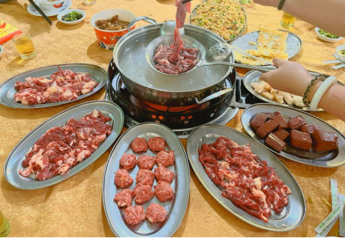 烫牛肉、品牛味,食客现场品尝五洞牛肉。任佳燕 摄