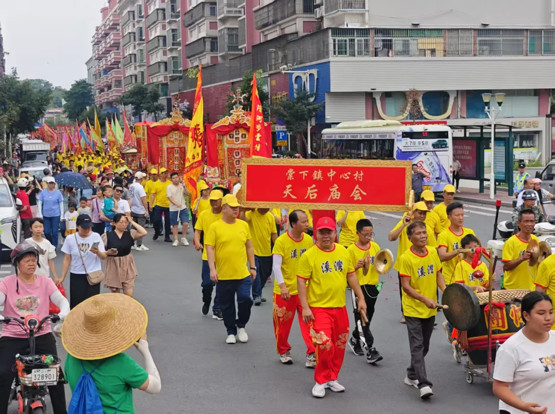 从天后宫到陈垣文化广场的2公里路上,500名群众簇拥追随,彩旗罗伞相映衬,鞭炮锣鼓齐争辉,棠下这座小镇沸腾了。那喧天锣鼓,既是古老习俗的脉搏,也是时代发展的足音。