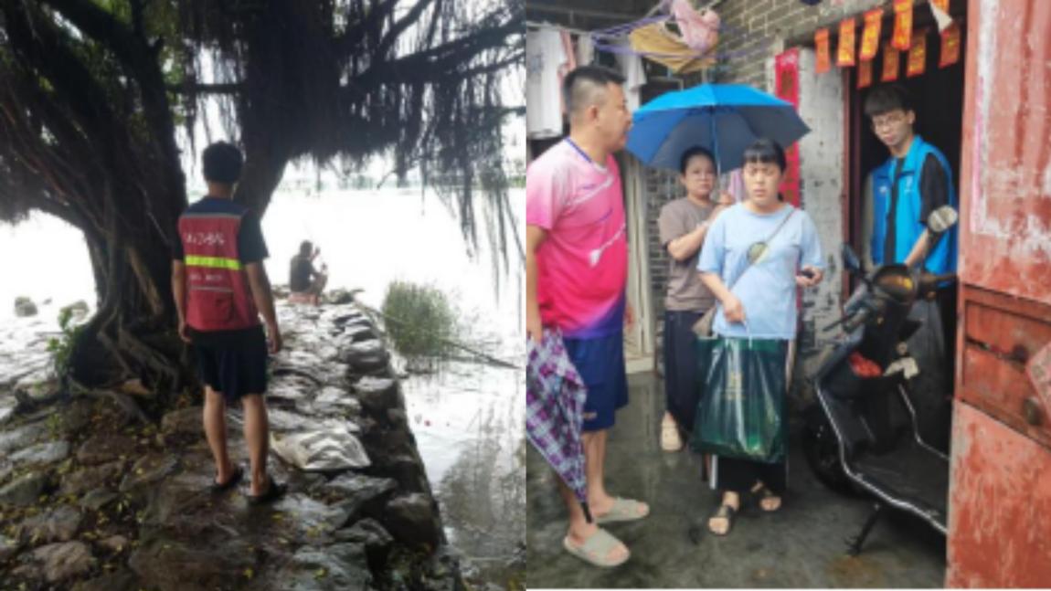 在潮连街道,富冈社区的退役军人们组成巡逻队,沿河岸劝离垂钓群众,逐户走访独居老人、残疾家庭等特殊群体。当发现一户精神疾病患者家庭房屋漏水时,区超发等退役军人立即协调社区资源,将祖孙三人安全转移至应急避难所,并积极协助社区工作人员,为群众提供热水、食物和必要的生活物资,确保大家的基本生活需求得到保障。
