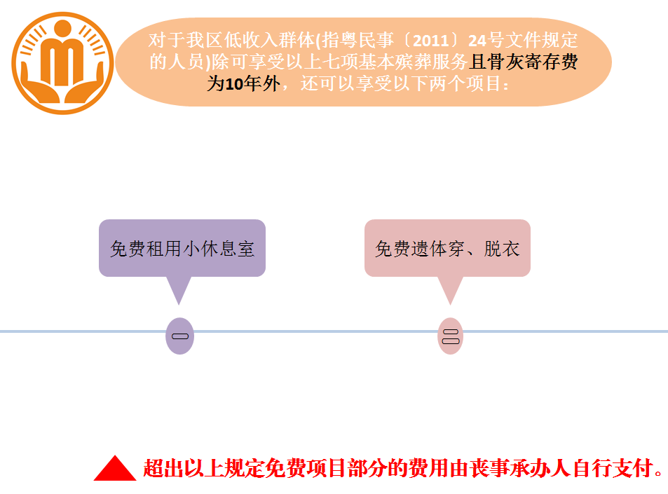 (二)对于我区低收入群体(指粤民事〔2011〕24号文件规定的人员)可享受项目如下: